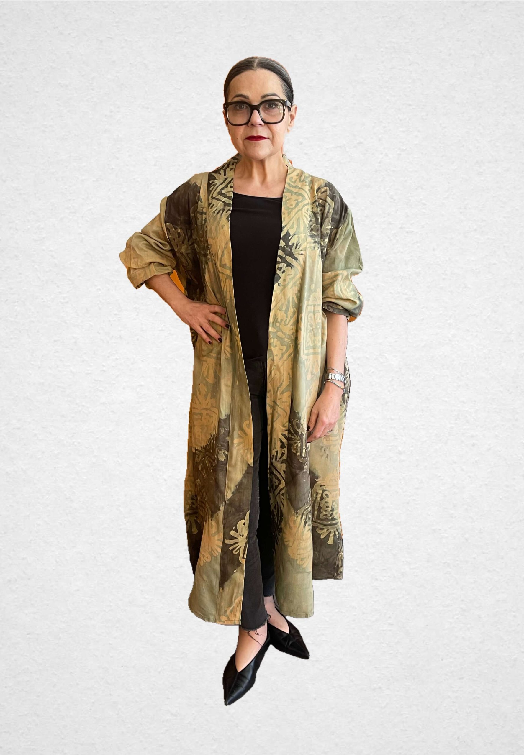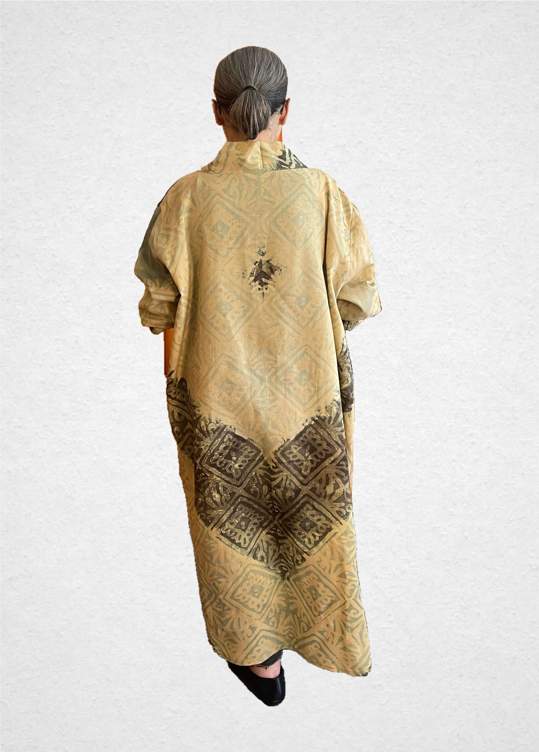 Das besondere Highlight ist die handwerklich hergestellte Batik aus Mauretanien – jedes Stück ist ein Unikat und erzählt seine eigene Geschichte. Die kunstvollen Muster entstehen in aufwendiger Handarbeit und machen diesen Kimono zu etwas ganz Besonderem.